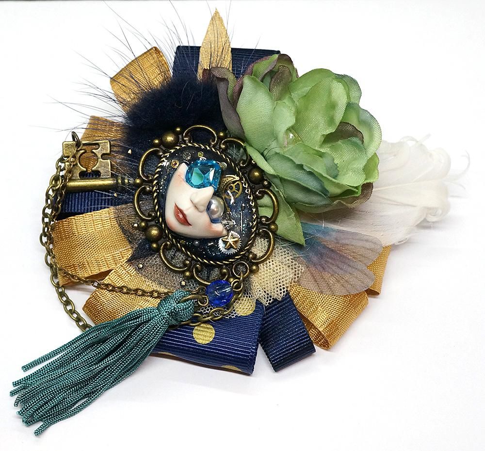 クリップ付きコサージュでブローチと、クリップと2wayでお使いいただけます。