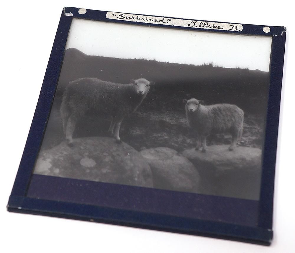 昔のスライドプロジェクター、マジックランタン(幻燈機)用のガラス・スライドです。