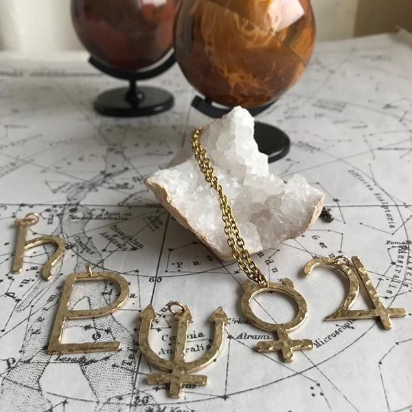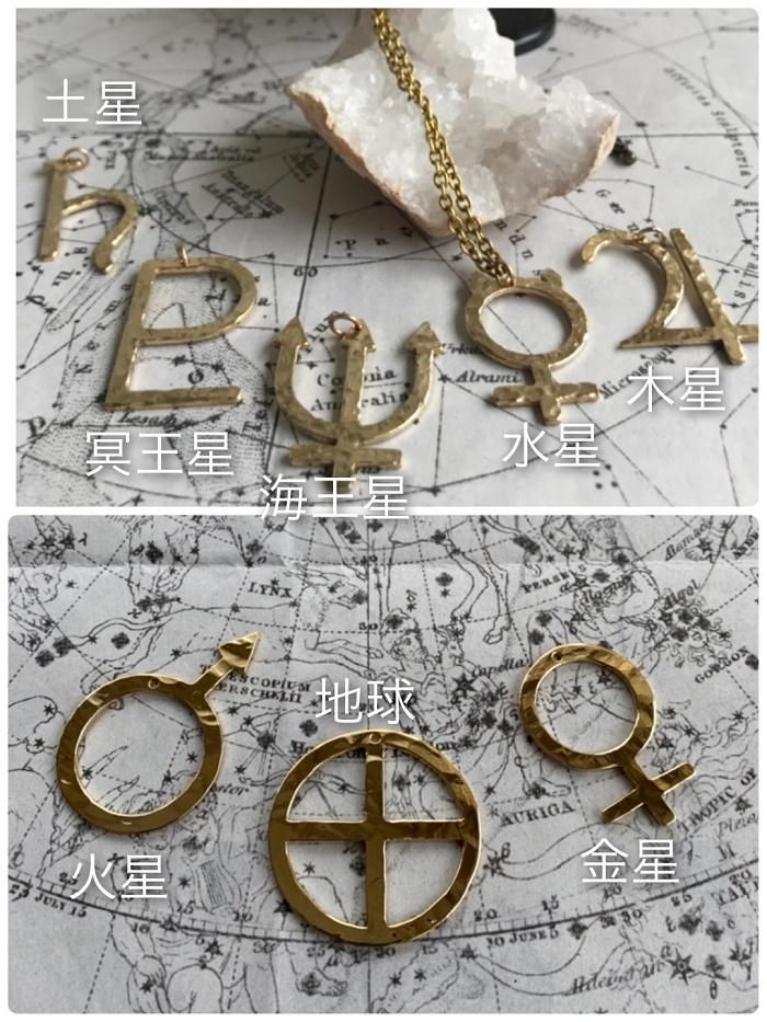 惑星記号を真鍮でペンダントトップに仕立てました。