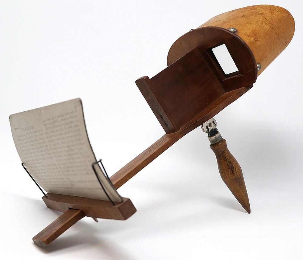 ステレオ写真を先端にセットしてレンズ越しに覗くと