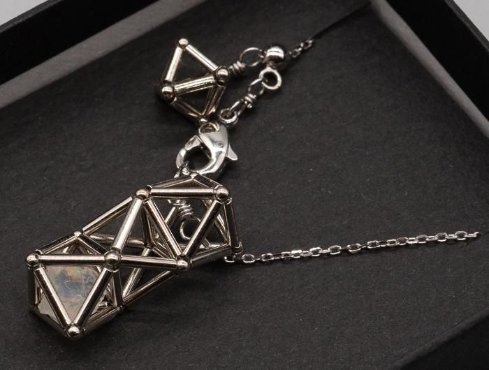 正八面体螺旋の中に一粒、鉱物を入れたネックレスです。