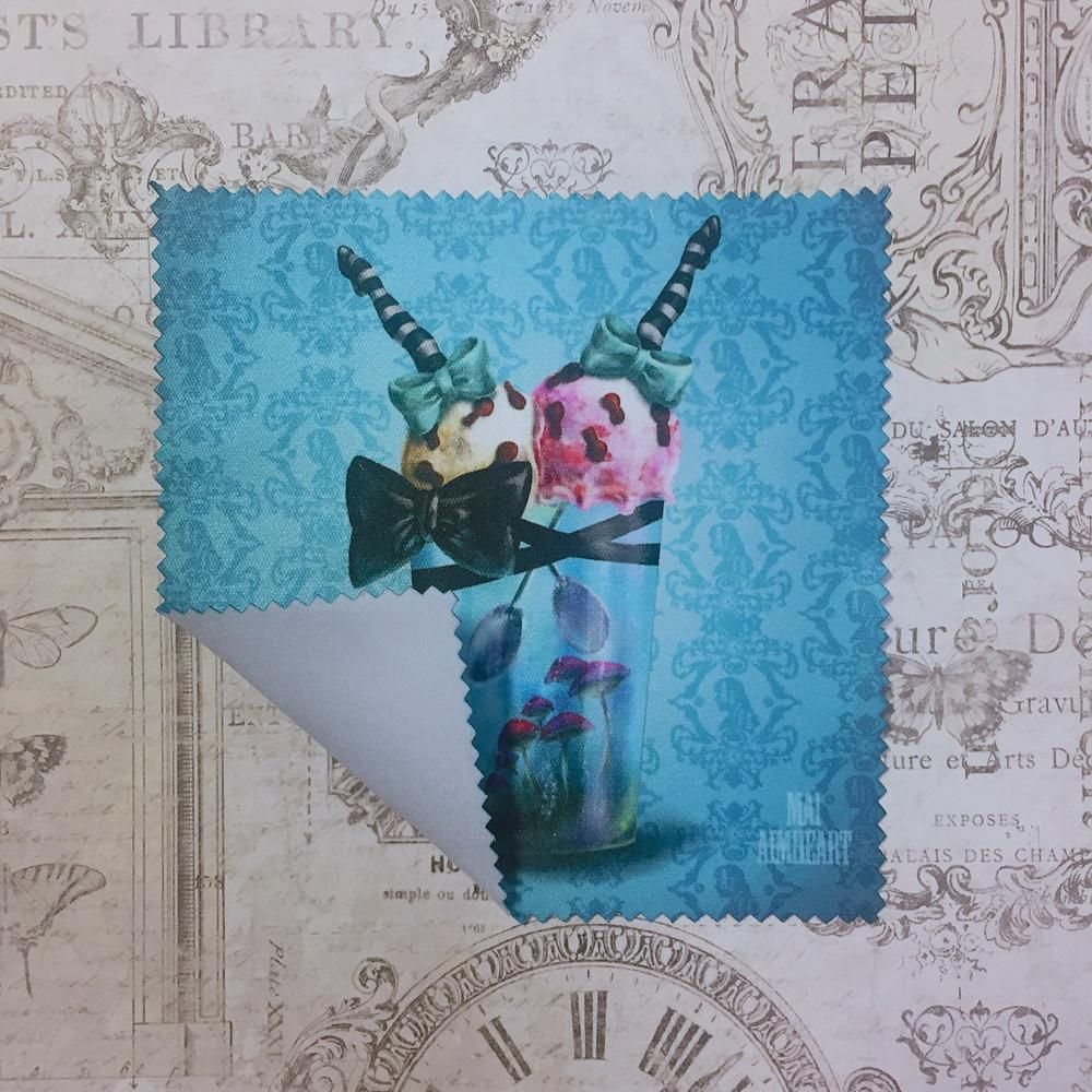 不思議の国のアリスのアリスをモチーフにしたティーソーダのイラストのメガネ拭き(マイクロファイバークロス)です。