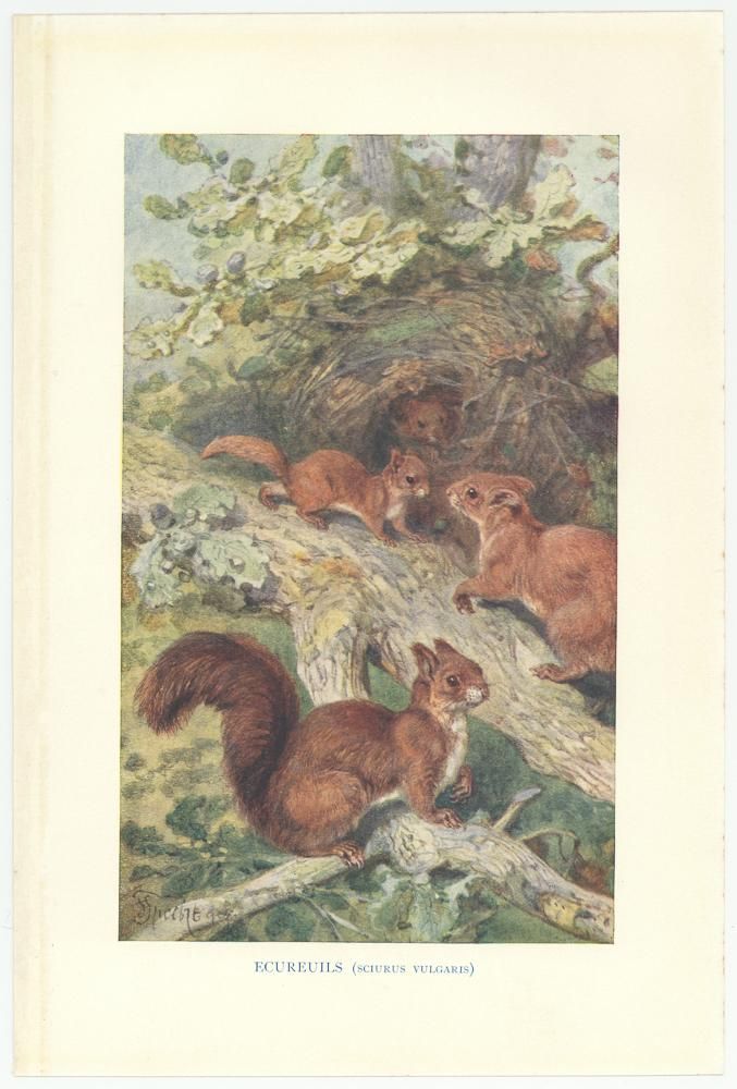 博物図版「Animaux du Monde-FAMILLE D'ÉCUREUILS COMMUNS-」(フランス1907年)