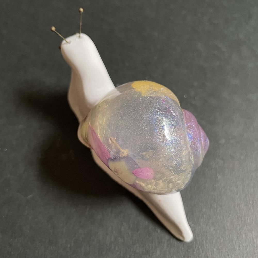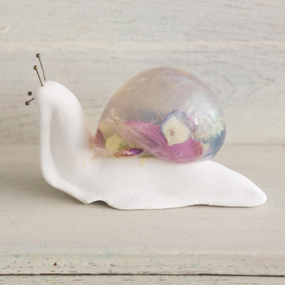 森の風景を殻の中に閉じ込めたようなカタツムリたちを作りました。