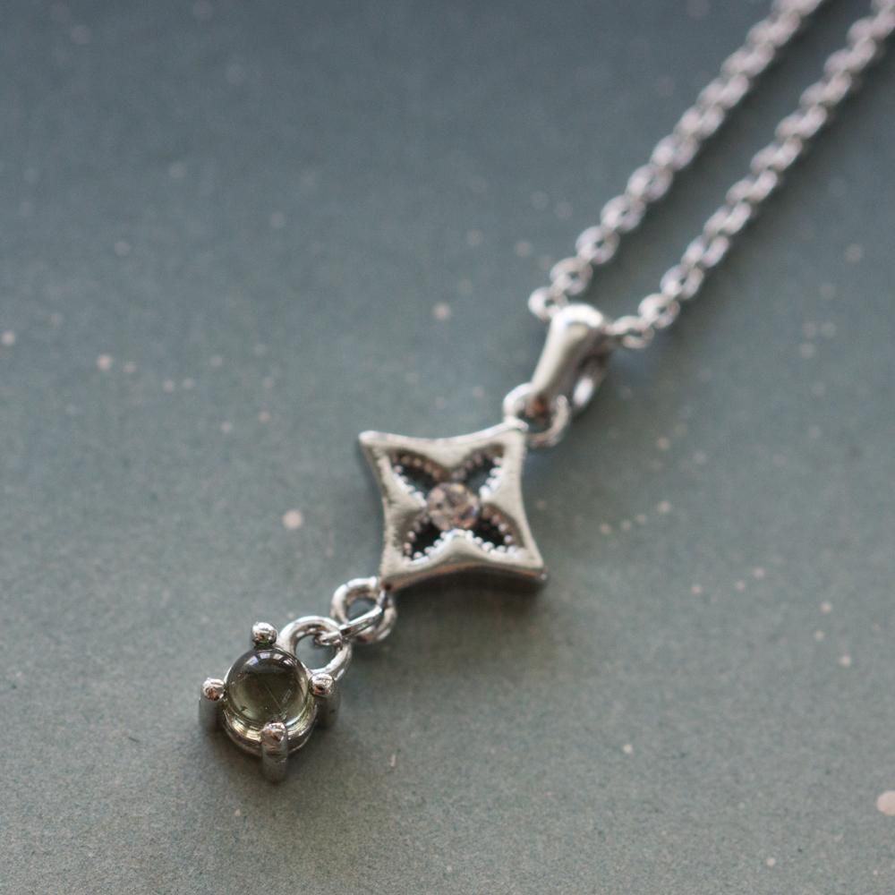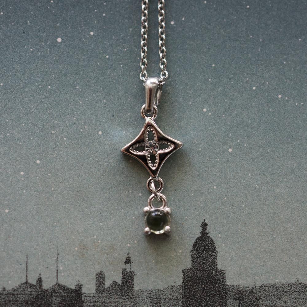 隕石の地球衝突時に作られた天然ガラス「モルダバイト」のを使用したネックレス。