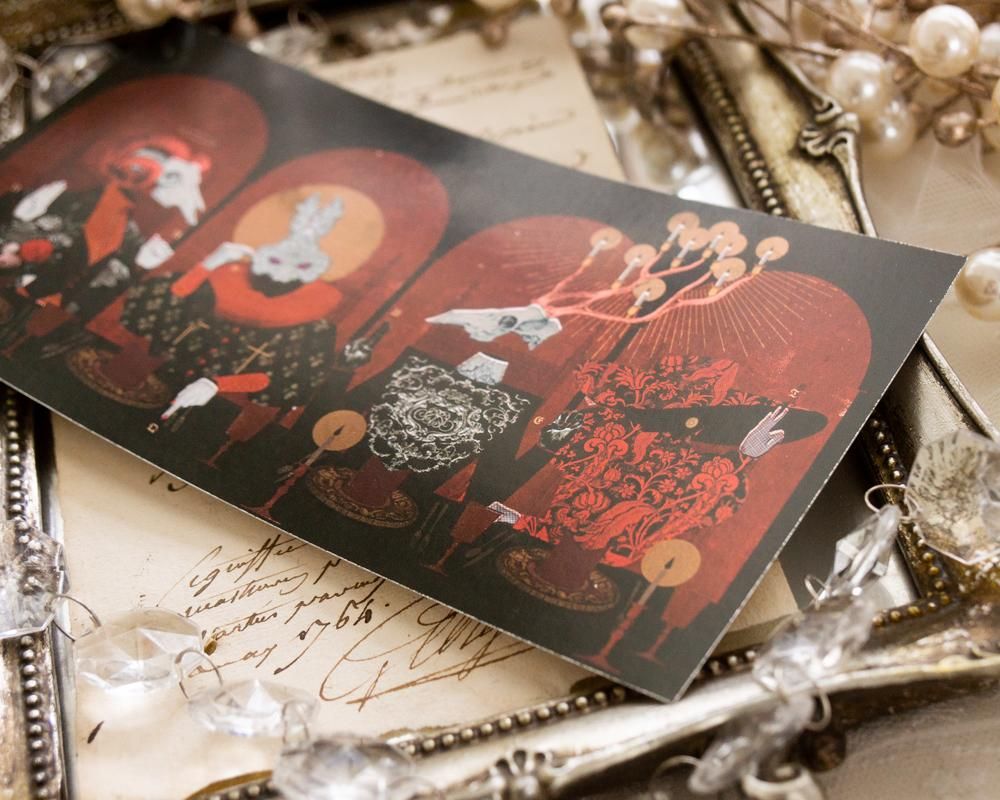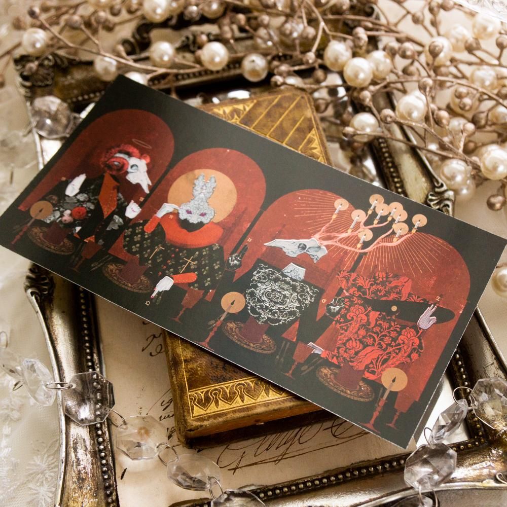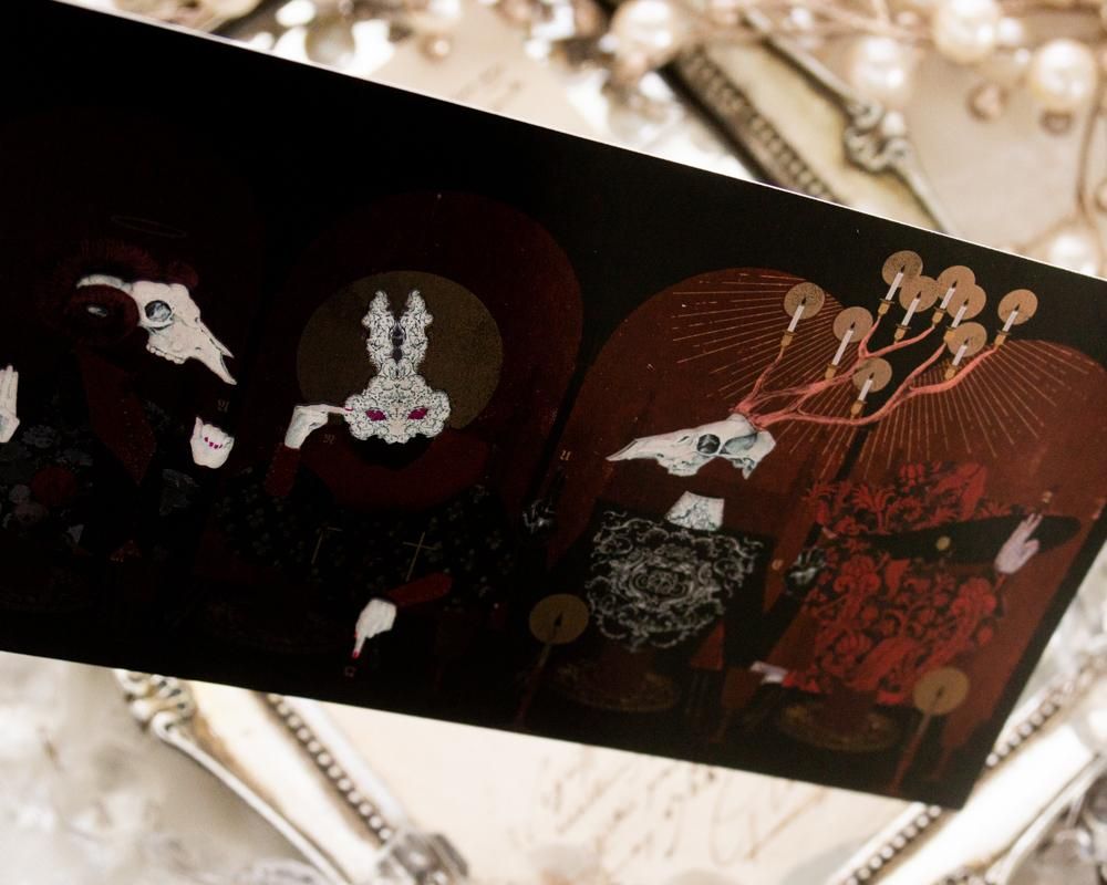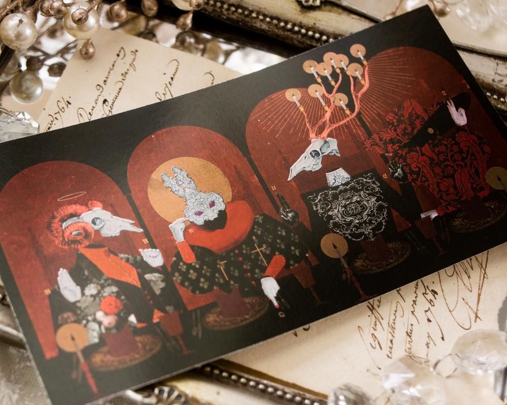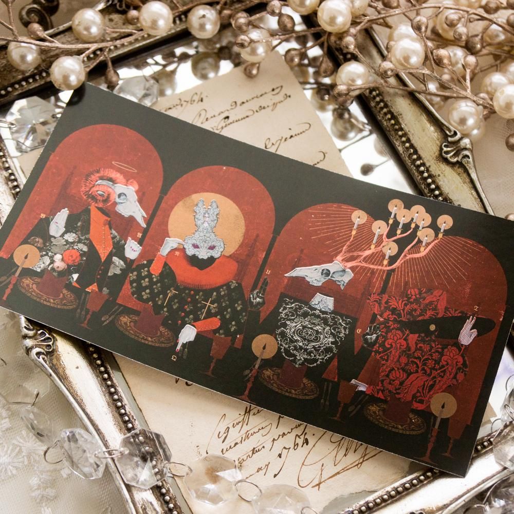 個展「BANQUET」のキービジュアルのメタリックカード。