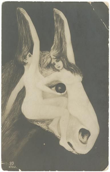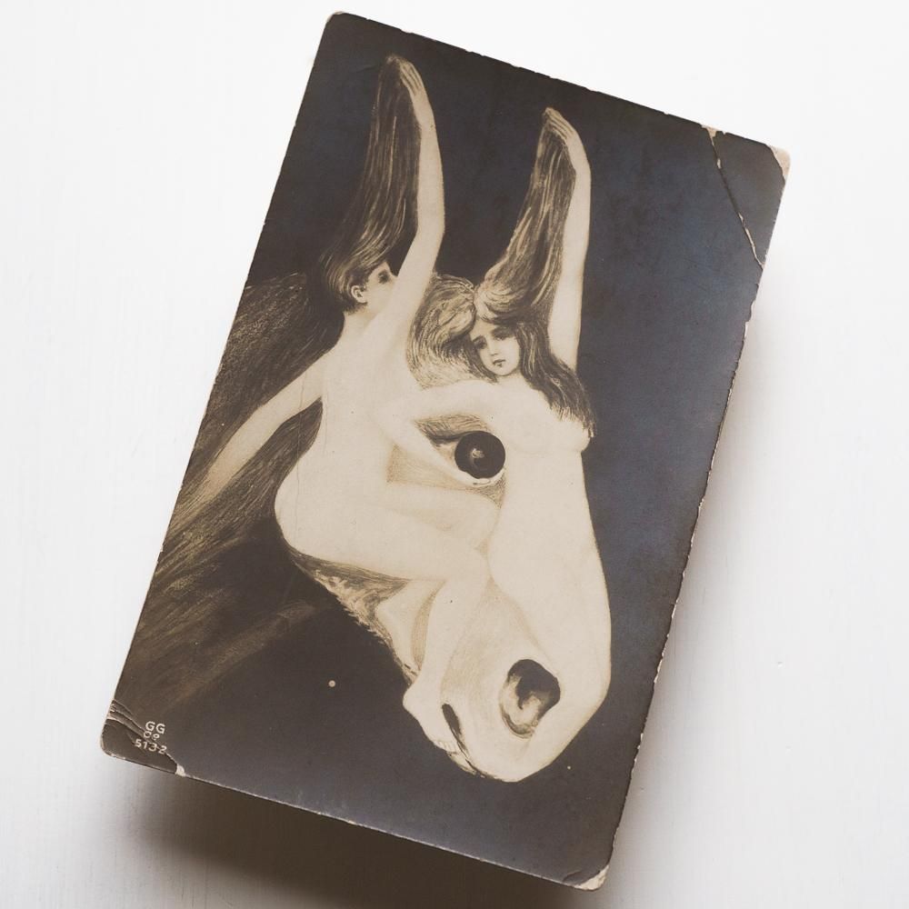 奇妙で不思議な雰囲気のアンティークポストカードです。