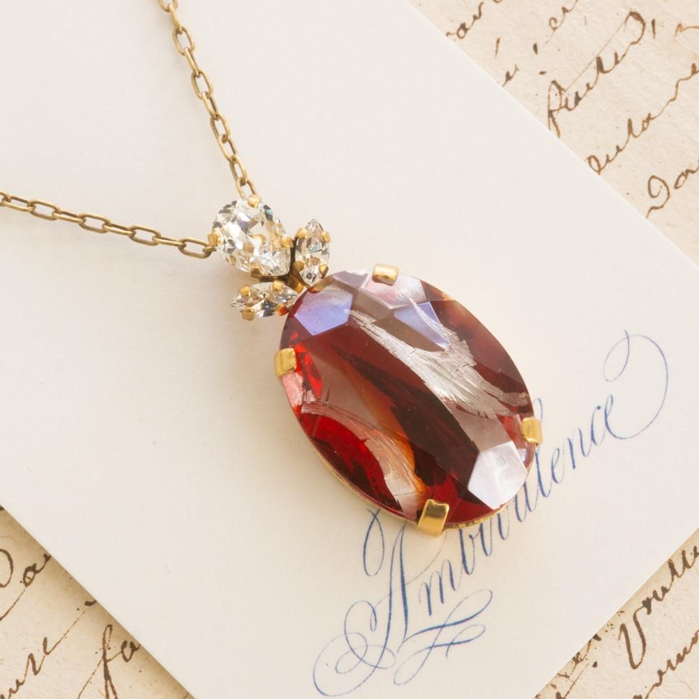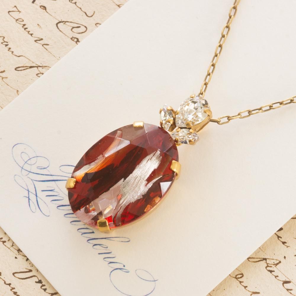 チェコガラスのオーバルネックレス(レッド)/Ambivalence