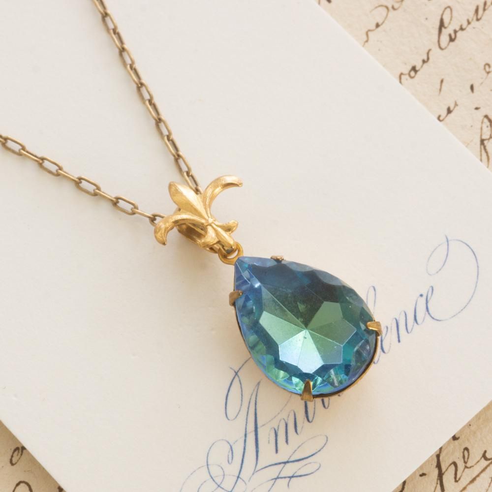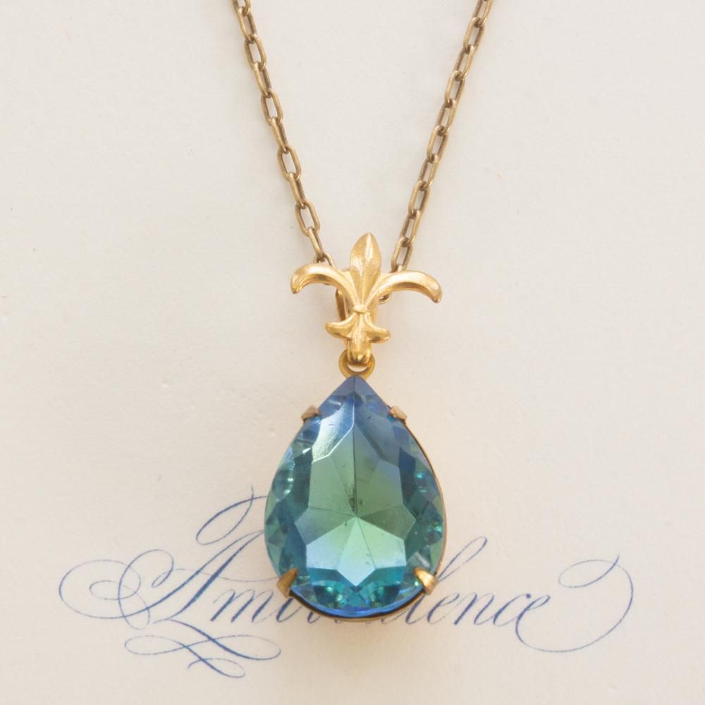 ヴィンテージ雫ガラスのネックレス(ブルー)/Ambivalence