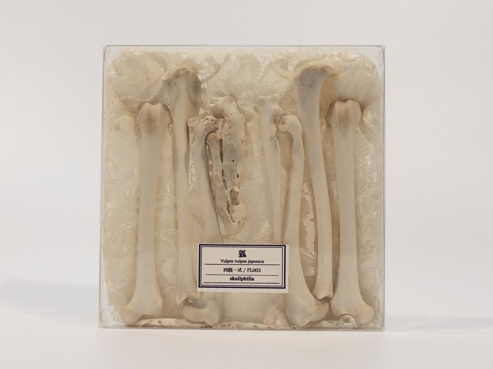 狐の足の骨を纏めました。三本脚の個体だった為、脚が一部変形して奇形となっております。