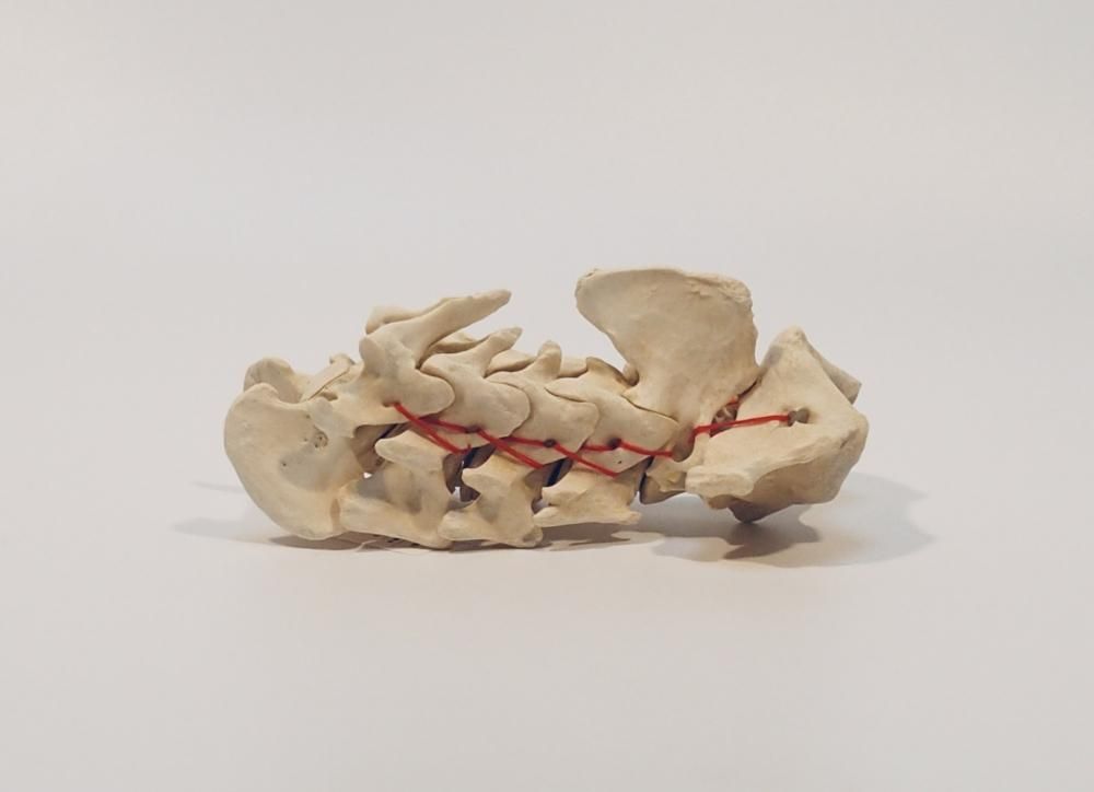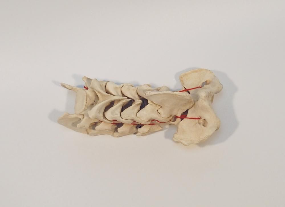 背骨一式と同一個体です。骨同士を赤い糸で繋げてあります。