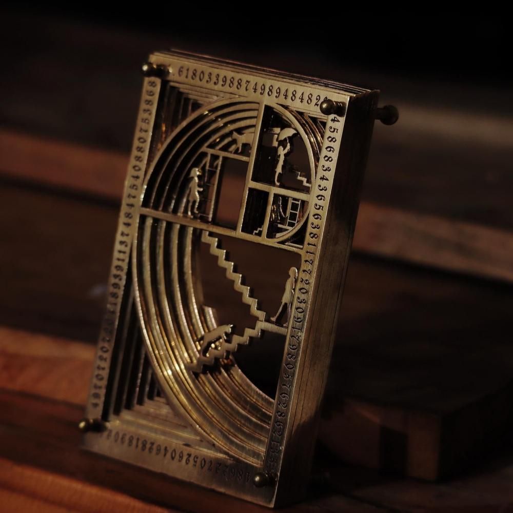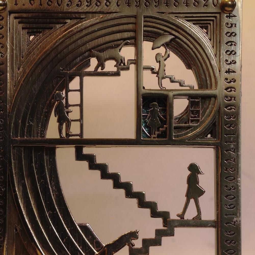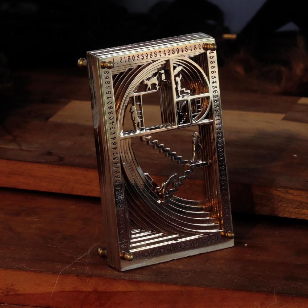 黄金比という美しい比率でできた、不思議な回廊の世界。よく見ると、階段を上る人がいて、猫がのんびり座っていて、まるで小さな物語が始まりそう。「ここはどこに続いているんだろう?」「この先には何があるんだろう?」そんな想像がどんどん膨らんで、見る人それぞれの物語が生まれていく。