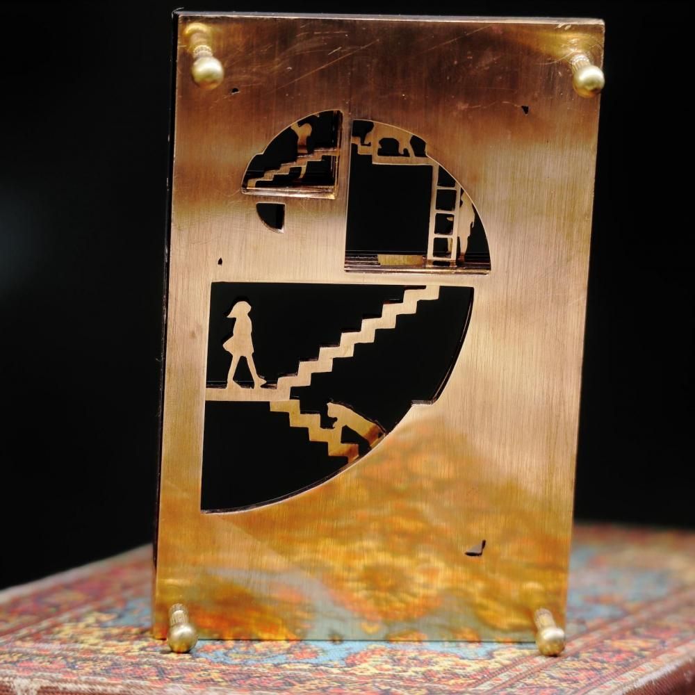 手作業でていねいに切り抜いた真鍮の板を、何層にも重ねて作った小さな建築。