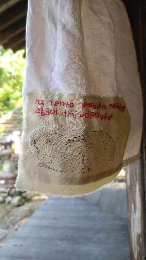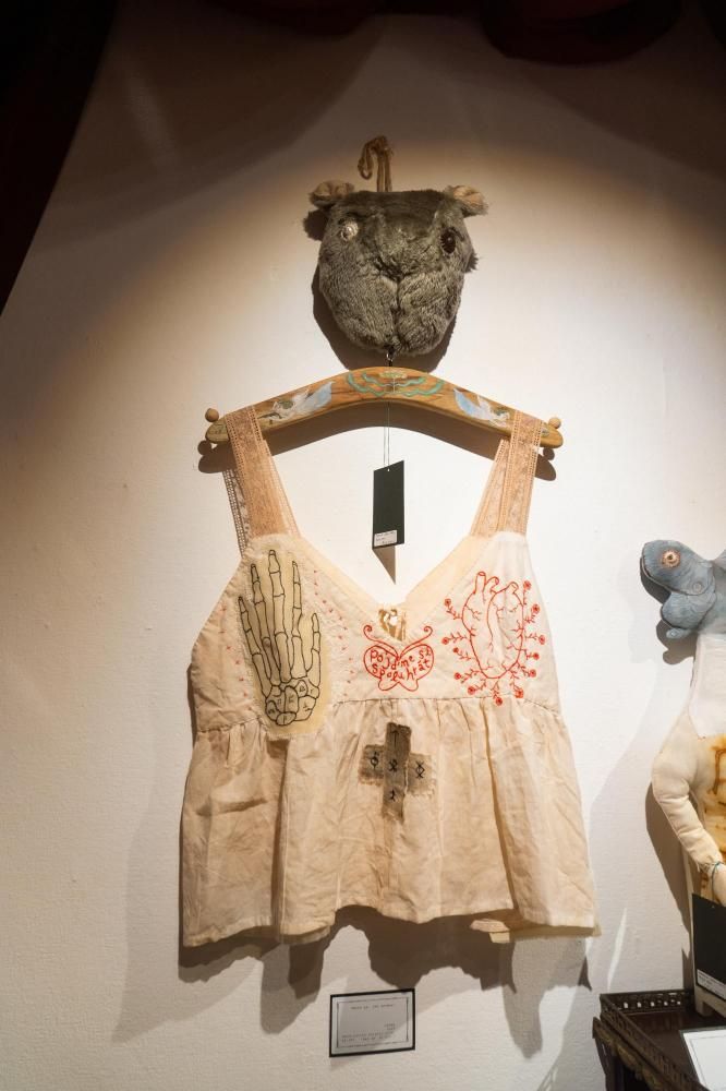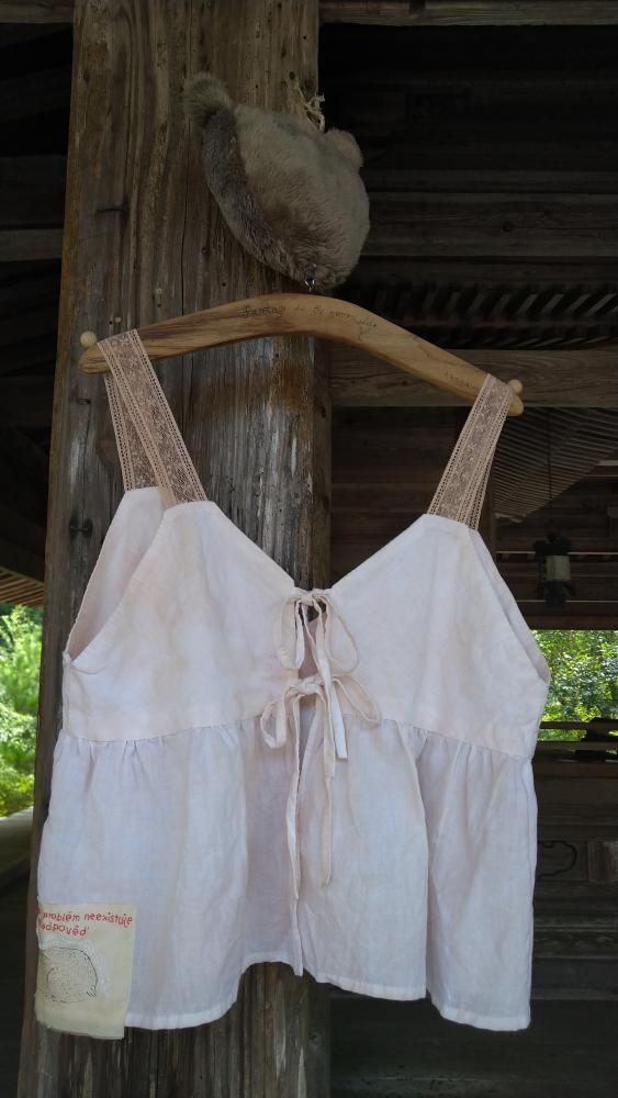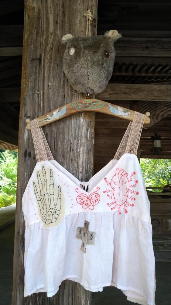 キャミソールはすべて手縫いして仕立てビワの葉で染め刺繍を施しました。
