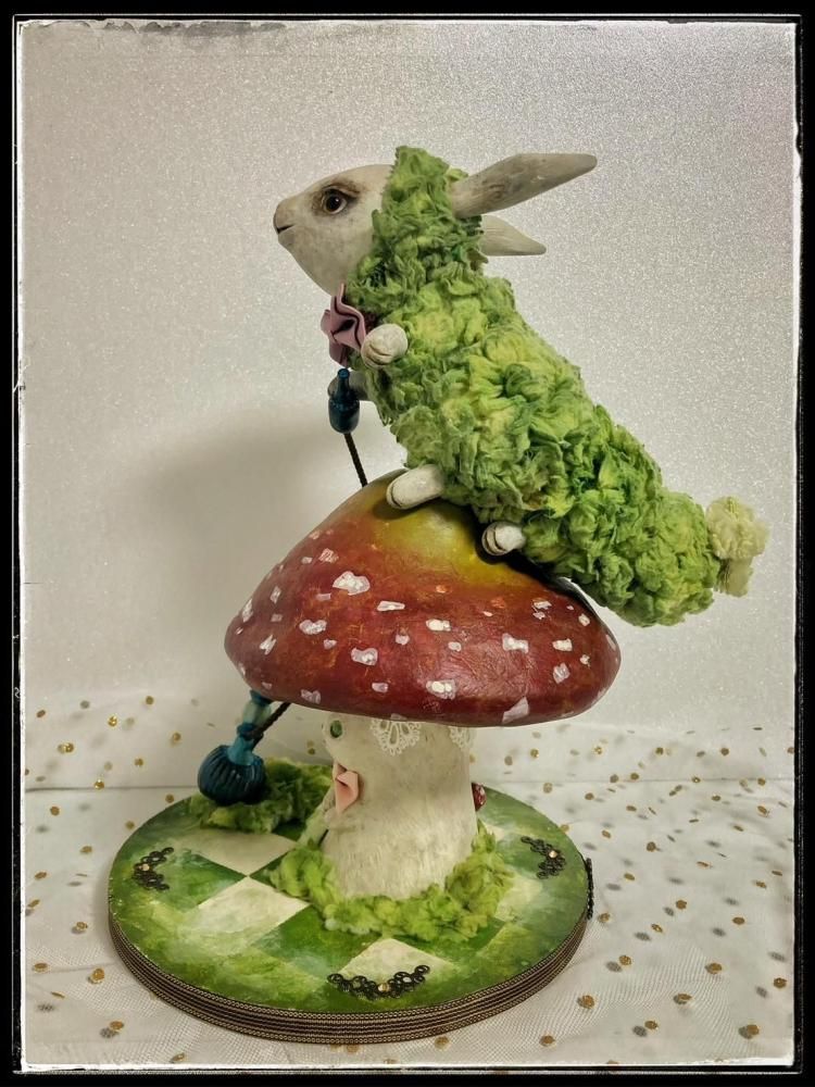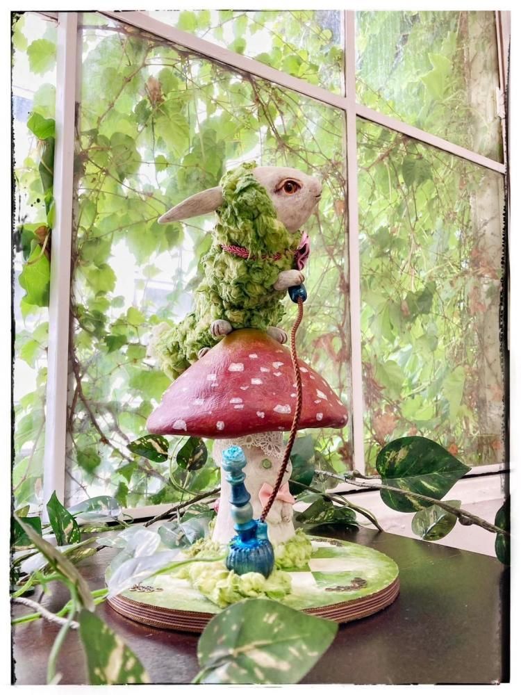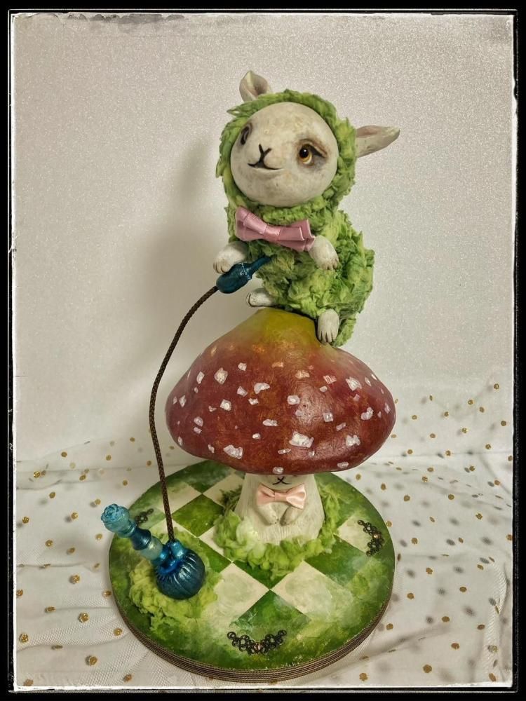いもむし本体とキノコ、手に持っている水タバコは磁石でくっ付いています。
