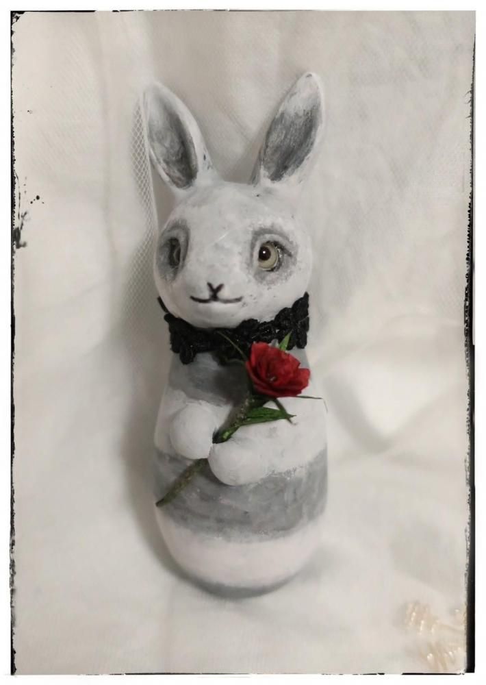 石粉粘土・グラスアイ・紙・ビーズ