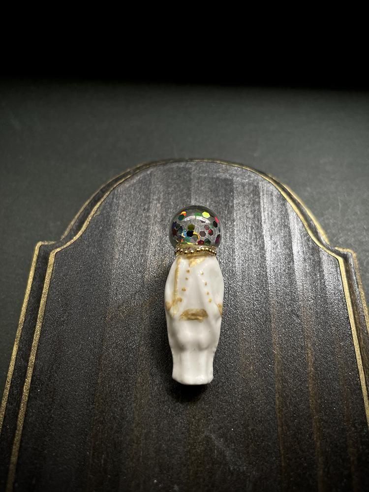 本体はアンティークのフェーブから型を取り石膏で複製、ひとつひとつ着色、コーティングをしました。
